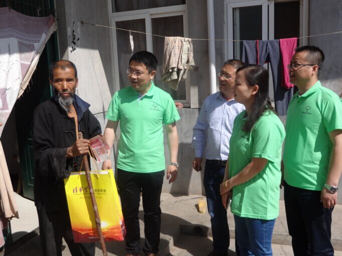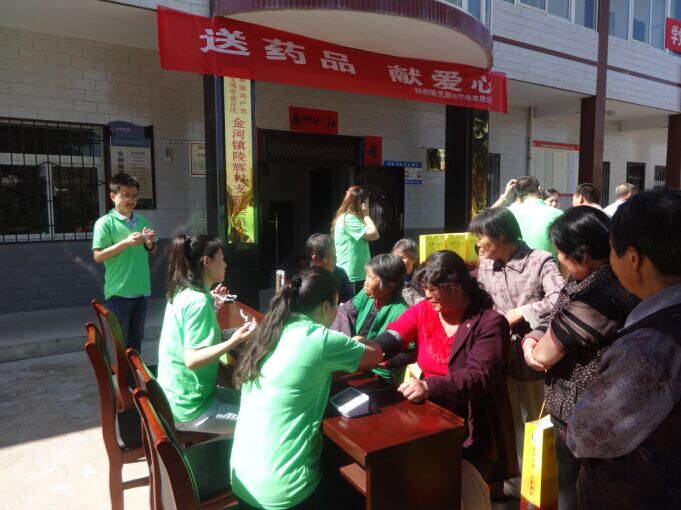 根据金台区扶贫帮扶工作整体安排,2016年,公司对口结对帮扶金河镇陵辉村。 5月24日上午,公司组织工会、团委、大药房到金河镇陵辉村慰问帮扶。 在公司工会主席李继虎、团委书记王静、大药房总经理刘明的带领下,公司工会委员、大药房员工11人乘车到达陵辉村,受到金河镇联企干部、陵辉村委和乡亲门的热烈欢迎。公司为该村贫困群众送去风寒感冒颗粒、藿香正气水、六味地黄丸、大山楂丸、保和丸等常用药。在村干部的带领下,到该村特困户家中慰问,送去了礼盒和慰问金,并给全体村民免费测量血压,进行健康指导,活动受到广大村民的好评。