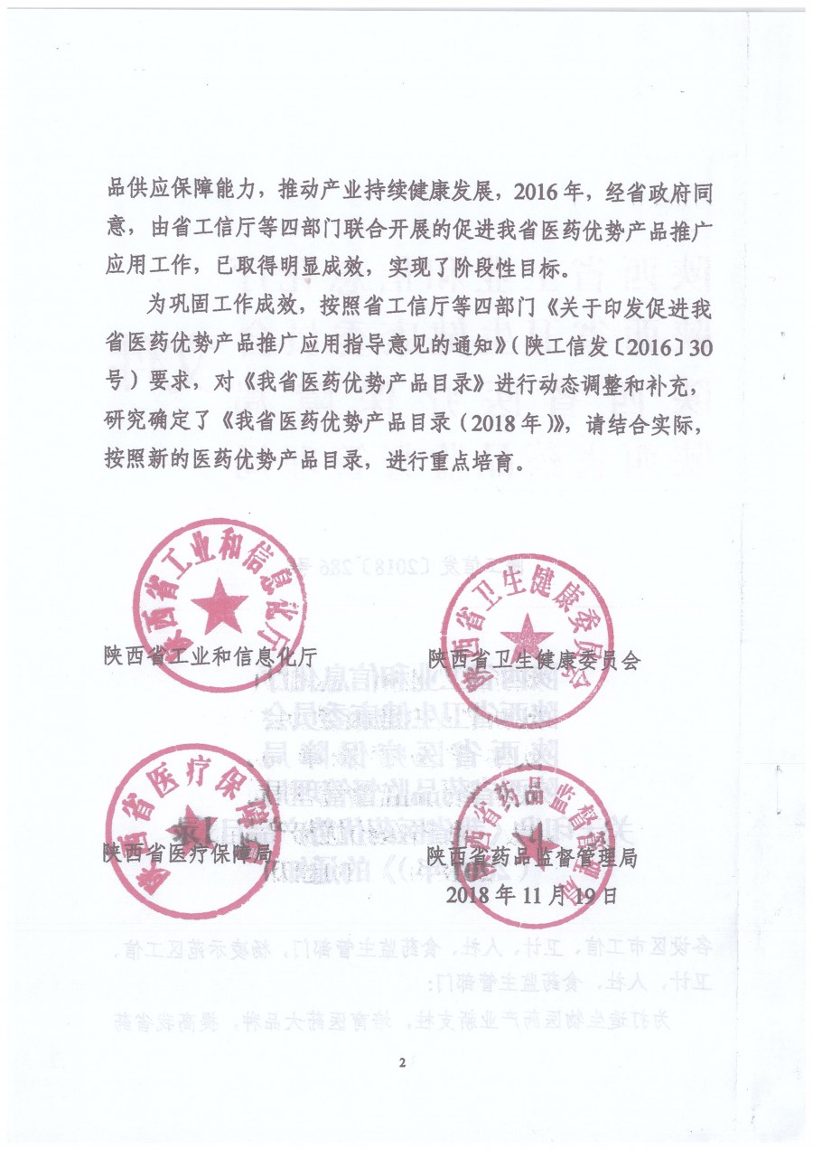 根据陕西省工业和信息化厅、陕西省卫生健康委员会、陕西省医疗保障局、陕西省药品监督管理局《关于印发促进陕西省医药优势产品推广应用指导意见的通知》(陕工信发[2016]30号),现对《陕西省医药优势产品目录》进行动态调整和补充,研究确定了《我省医药优势产品目录(2018年)》。 乐鱼(中国)一站式服务平台产品《舒肝快胃丸》成功入选,将作为医药优势产品,进行重点培养。