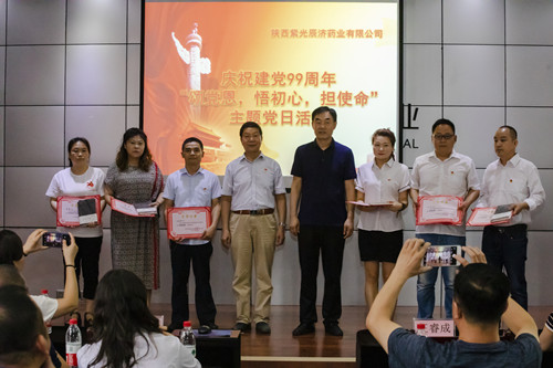 为隆重纪念中国共产党成立99周年,回顾党的光辉历程,讴歌党的丰功伟绩,中共乐鱼(中国)一站式服务平台党支部于2020年6月29日在公司三号会议室举办庆祝建党99周年“颂党恩 悟初心 担使命”主题党日活动。总经理王睿成、中共紫光辰济药业有限公司党支部第一书记肖红星、党支部书记王静、工会主席李继虎等60余人参加活动,特邀金台区非公党委办公室主任杨智明出席本次活动。 活动在全体党员和优秀员工的国歌声中拉开序幕,全体党员由党支部书记王静带领在鲜红的党旗下重温入党誓词。在誓言的感染下,党员同志们高举右手、握紧拳头,在鲜艳的党旗下郑重宣誓。党支部第一书记肖红星发表讲话,对一年来党建工作进行了简要回顾总结,强调在今后的党建工作中要继续提高党务工作者的政治素养,全体党员要提高政治站位,统一思想认识,加强深度融合,提升党建质量,提升企业对外形象。 活动中,公司全体中层管理干部及优秀员工分别进行宣誓,共同感悟企业文化、重申各岗位的职责,励志用自己的才华与能量服务企业,共同携手创造辰济辉煌的明天。公司总经理王睿成在讲话中强调,公司党支部的队伍在不断壮大,各位党员要充分发挥先锋模范作用,冲锋在前,勇于担当,坚持党的建设和生产运营等各项工作深度融合,努力实现党建工作与公司各项工作双促进、双提升。 本次活动还表彰了一年来为党支部和公司作出突出贡献的优秀党务工作者、优秀党员及企业文化优秀员工,组建了公司党建培训讲师团,还特别聘请金台区非公党委办公室主任杨智明为党建培训讲师,与会领导为受表彰人员颁奖。 活动最后,由我司特邀党建培训讲师杨智明主任带领党员共同学习“三会一课”制度,讲解在新的历史条件下党组织落实此项制度的重要作用及意义,希望全体党员及党务工作者能积极认真履行“三会一课”制度,加强党组织建设,提高基层党组织的战斗力。 2020年6月30日,中共乐鱼(中国)一站式服务平台党支部书记王静、销售支部书记张晓辉参加了宝鸡市金台区委组织部组织的“全区非公、社会组织纪念建党99周年“颂党恩 守初心 担使命”表彰暨主题党日微视频竞赛大会”,市创先争优先进基层党组织、脱贫攻坚先进基层党组织、疫情防控先进基层党组织、优秀共产党员、优秀党务工作者均参加了会议。 会上,中共乐鱼(中国)一站式服务平台党支部荣获“创先争优先进基层党组织”、“主题党日微视频竞赛组织奖”、销售支部书记张晓辉同志荣获“优秀党务工作者”荣誉称号。 今后,在集团党委的支持下,中共乐鱼(中国)一站式服务平台党支部将继续保持谦虚谨慎、不骄不躁的作风,以更加坚定的信念、更加务实的作风、更加振奋的精神,抢抓机遇,迎难而上,再创佳绩。