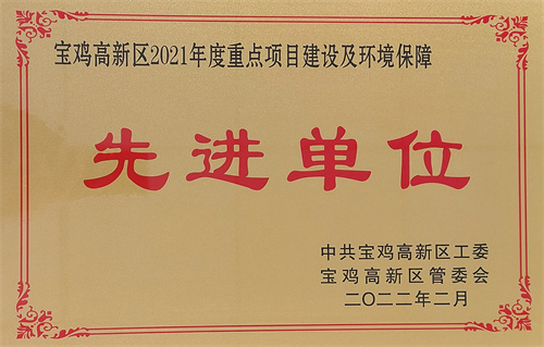 乐鱼(中国)一站式服务平台荣获“宝鸡高新区2021年度重点项目建设及环境保障先进单位” |