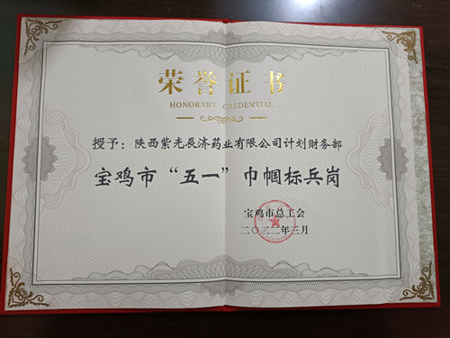 近日,在宝鸡市庆祝“三八”表彰大会暨女工委工作安排部署会上,紫光辰济药业计划财务部被宝鸡市总工会授予宝鸡市“五一”巾帼标兵岗荣誉称号。会上市人大常委会副主任、市总工会主席曹海芹对获奖单位及个人给予了高度赞扬和评价。