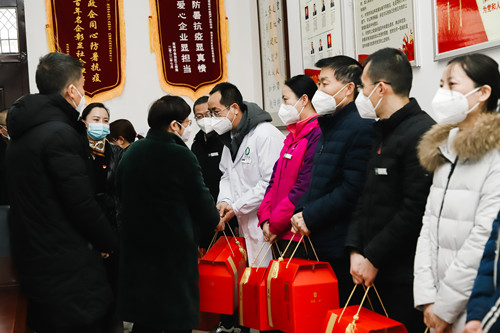 公司生产副总李继虎代表公司对刘主席的到来表示热烈欢迎和衷心的感谢,为保障春节前后药品保供,公司积极组织力量,制定工作预案,强化产销调度,不断加大市场需求品种所需原辅料储备力度,确保产业链供应链稳定畅通。在市级各部门的关心和支持下,在集团的顶层设计规划下,公司正朝着建设国内乃至国际标准的现代化、智能化的智慧工厂的方向和目标推进,争取早日建成投产,为宝鸡市经济建设和中医药产业高质量发展再立新功,为广大消费者用药安全和生命健康再做贡献。相信,在市委市政府和全市各界群众的共同努力下,疫情必定会早日结束,2023年新春更加灿烂多彩。 市政协副主席张南、市政协秘书长朱小强,紫光辰济药业副总经理王静、公司党办主任张建华和部分员工代表参加了本次慰问活动。