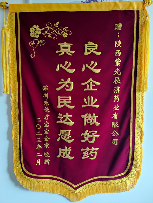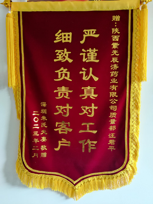 2023年元宵节刚过,正在忙碌上班的汪总工再次接到了陈女士的信息:汪部长,很不好意思,宝宝满月那天就想做面锦旗送给你们,以表达我们的感恩之情,但因后来一段时间深圳疫情严重,我们一家全阳了,忙于治疗和修养,时间耽误了。刚一过年我们就制作了锦旗,今天快递已送到贵公司门卫处,请查收。 打开包装精美的长条型方盒,展开两面烫着金字的旌旗,一方系赠乐鱼(中国)一站式服务平台:“良心企业做好药,真心为民达愿成”;另一方赠技术总工汪君平:“严谨认真对工作,细致负责对客户”。医者仁心,看着金光闪耀的锦旗,汪总工眼眶有些润湿了。金杯银杯不及老百姓的口碑,这锦旗不仅是对培坤丸疗效的肯定,更是对紫光辰济这个百年老字号药企的认同和赞誉啊! 尽小者大,慎微者著,百年来紫光辰济人脚踏实地,守牢质量底线,用工匠精神坚持做好药,为人民,以疗效确切的产品赢得了消费者的良好口碑;未来发展之路上,紫光辰济将继续做好药品生产,充分发挥中医药的独特优势与作用,守正创新,不断进取,为人民健康提供坚实的保障。