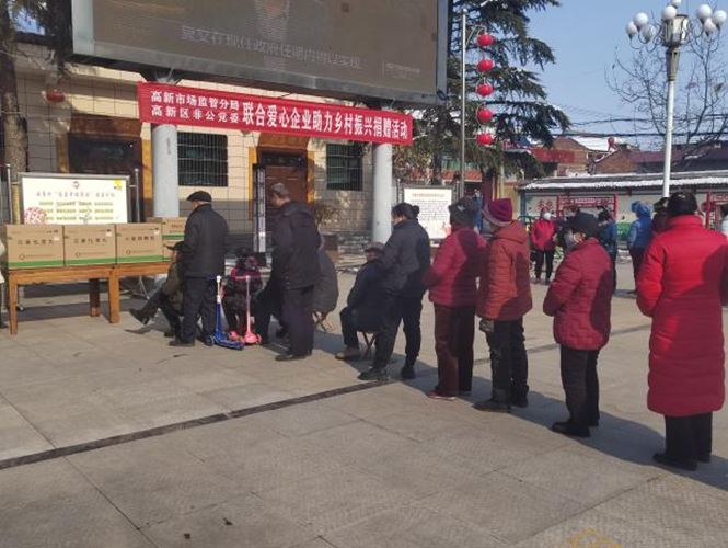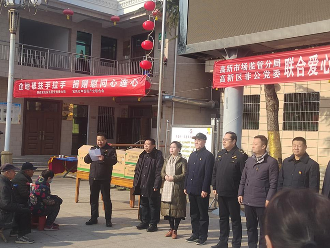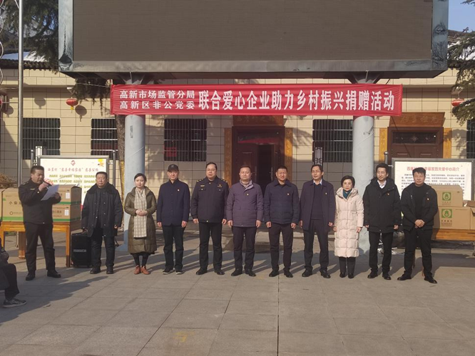 2024年1月25日下午2:30分,由市场监管局高新分局、高新区非公党委联合爱心企业在钓渭镇西崖村开展助力乡村振兴捐赠活动。宝鸡高新区党工委委员、组织人社部部长杨建平,市市场监管局党组成员、高新分局党委书记、局长郭慧平,钓渭镇党委书记贾建锋、4户爱心企业负责人和400余名村民参加了捐赠活动。分局副局长、高新区非公党委副书记徐保卫主持了活动。