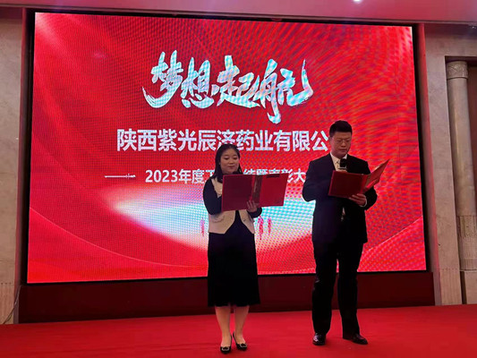 2024年2月28日,陕西紫光辰济药业2023年度工作总结暨表彰大会在宝鸡市万福国际酒店隆重举行。公司董事会、经营班子领导出席了会议,各部门负责人及主管级以上员工共计130余人参加了此次大会。